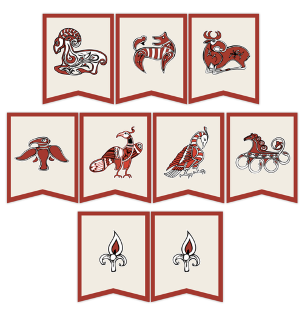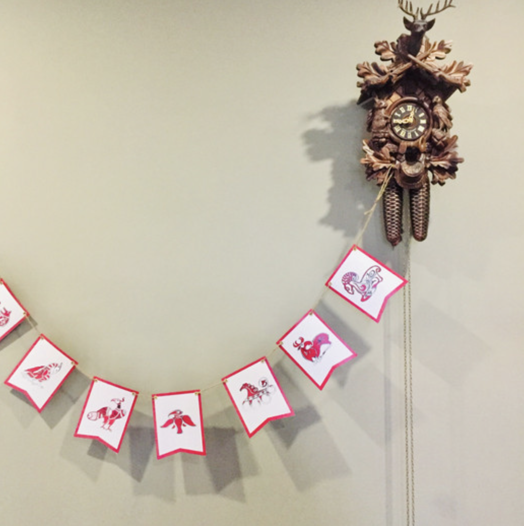 Флажки с иллюстрациями Александра Шевцова с обложек Полного собрания русских сказок.