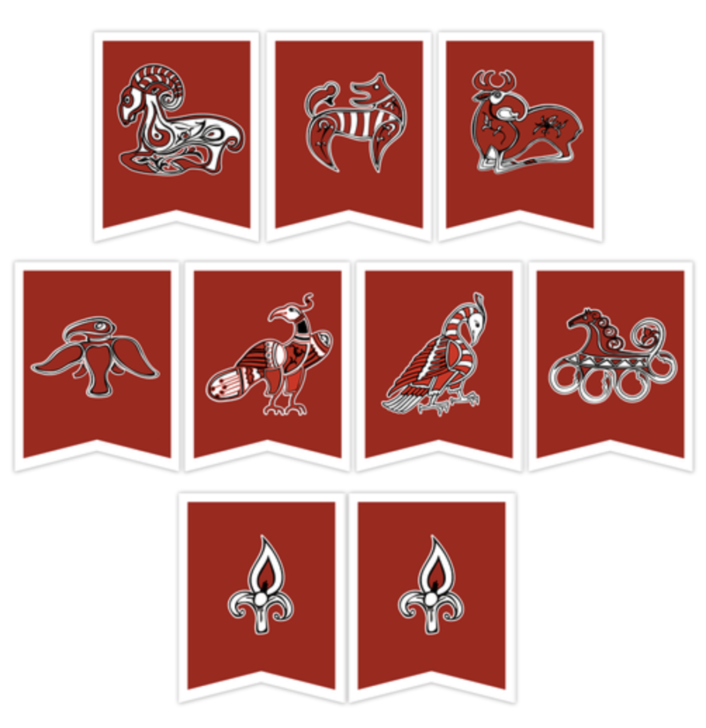 Флажки с иллюстрациями Александра Шевцова с обложек Полного собрания русских сказок.